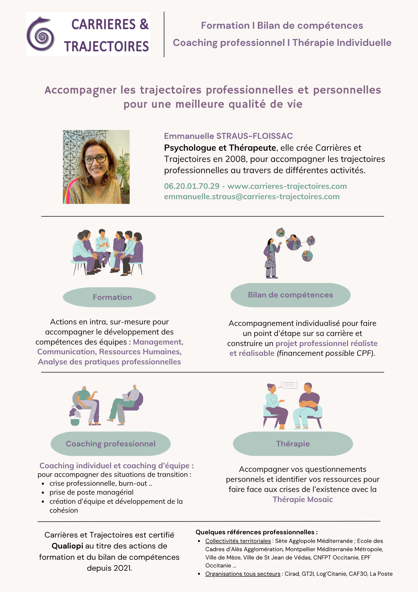 PSYCHOLOGUE ET THERAPEUTE, Emmanuelle STRAUS-FLOISSAC vous accompagne, depuis 2008, dans votre trajectoire professionnelle et personnelle ;